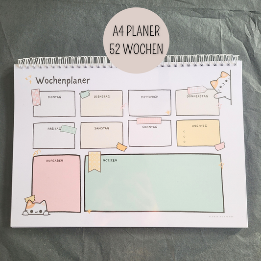 CUTE CAT - Wochenplaner A4, A5 mit Notizen, A6 To Do Listen & Sticker