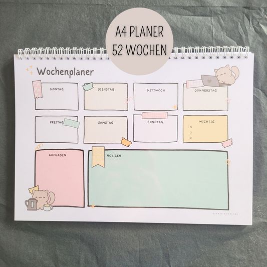 GREY CAT - Wochenplaner A4, A5 mit Notizen, A6 To Do Listen & Sticker