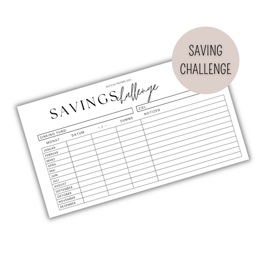 Dashboard für Budget Binder - Spar Challenges