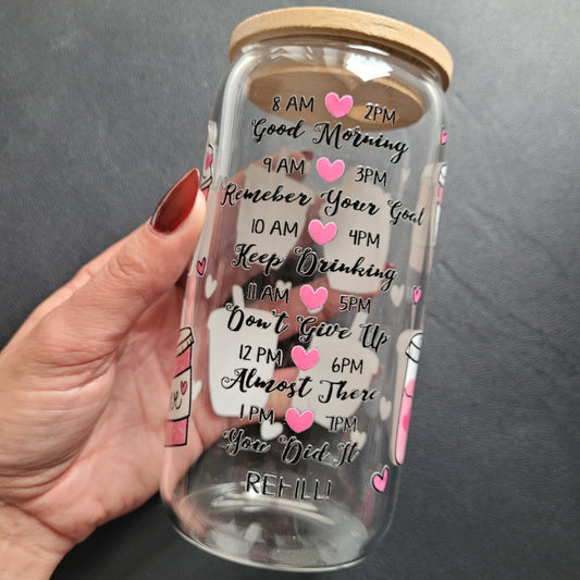 Trinkglas DONUTHERZ | Glas mit Deckel und Strohhalm I Eiskaffee Glas I Wiederverwendbares Trinkglas