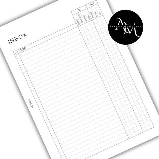GTD Inbox | Get Things Done | A5 Kalender Inbox Einlageblätter - GTD 001