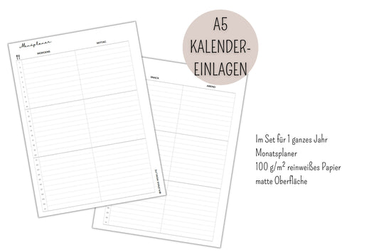 Monats-Menü-Tracker | A5 Kalender Einlageblätter | Menü Planer | MP 001