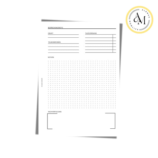 Besprechungsnotiz - Meeting Notes - Notizpapier | A5 Kalender Einlageblätter - Meeting 001