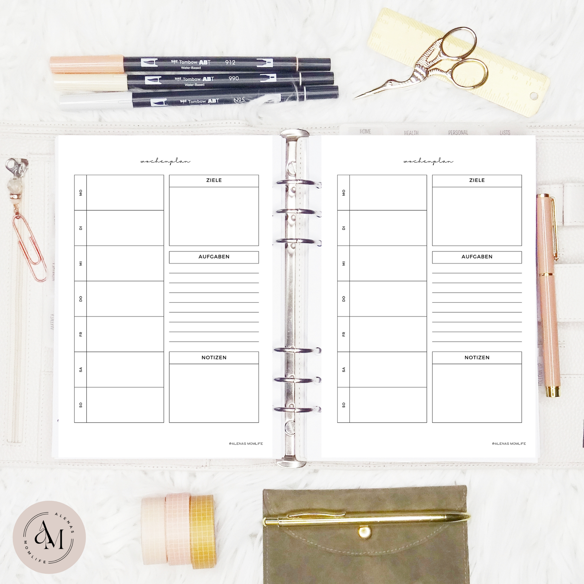 Übersichtlich, klar und minimalistisch ohne Schnick Schnack (den kannst du jederzeit mit bunten Sticker, Stiften und Washi Tape hinzufügen). :)