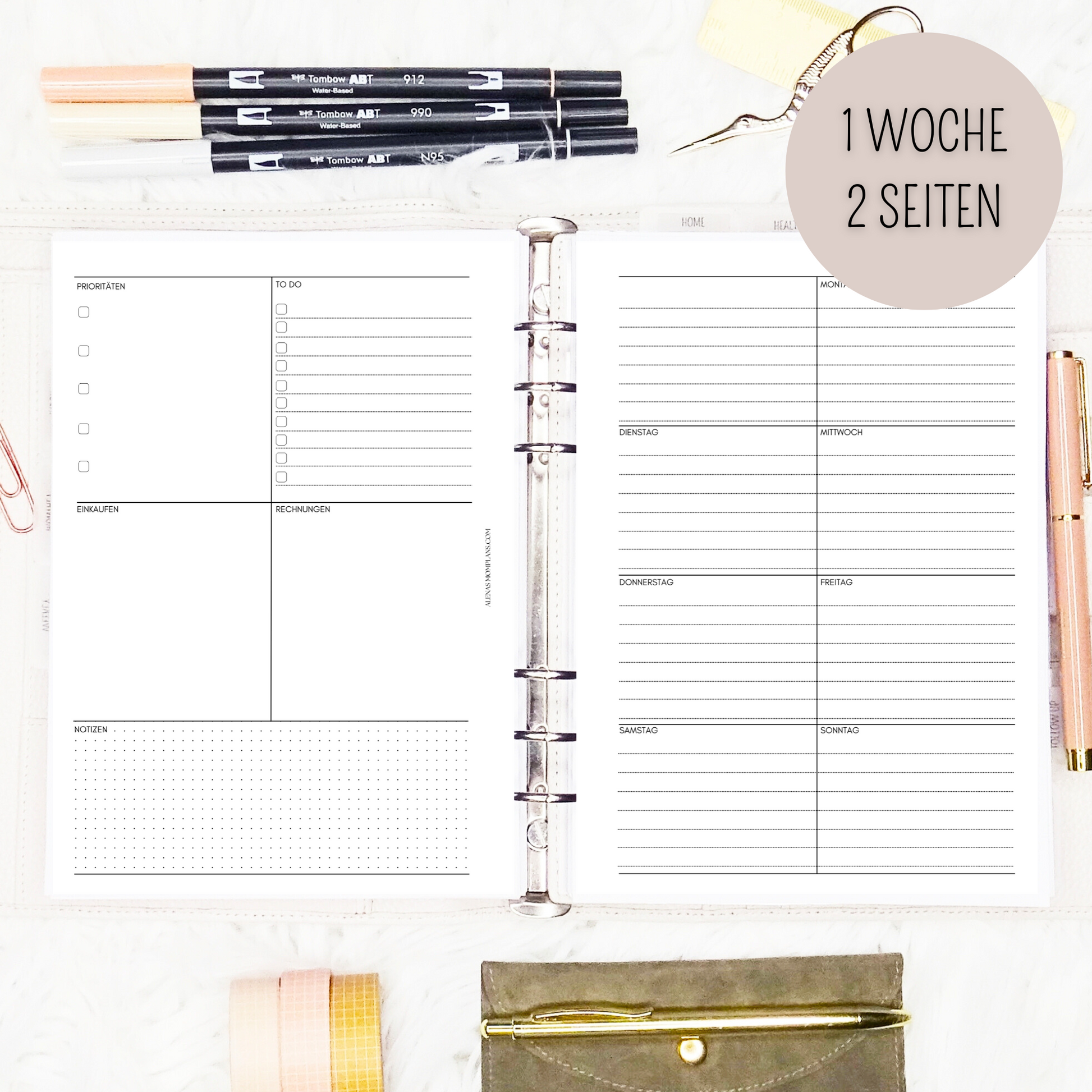 UNDATIERTER Wochenplaner - Kalendereinlagen 1 Woche 2 Seiten - WOP 009