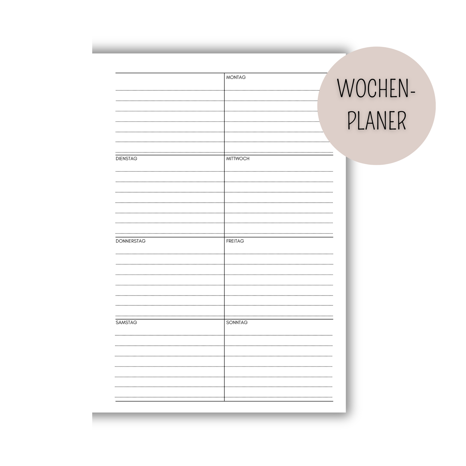 Die Wochenkalendereinlagen in Papierform sind dein idealer Begleiter, wenn du deine Termine und Ziele lieber handschriftlich festhältst. Auf hochwertigem Papier bieten sie Platz für deine täglichen Notizen, To-Do-Listen und wichtige Ereignisse. Kompakt und praktisch passen sie perfekt in deinen Planner oder dein Notizbuch und sind eine charmante Alternative zu digitalen Planungstools. Organisiere deine Woche auf eine traditionelle, persönliche Art und behalte stets den Überblick über deine Zeit.