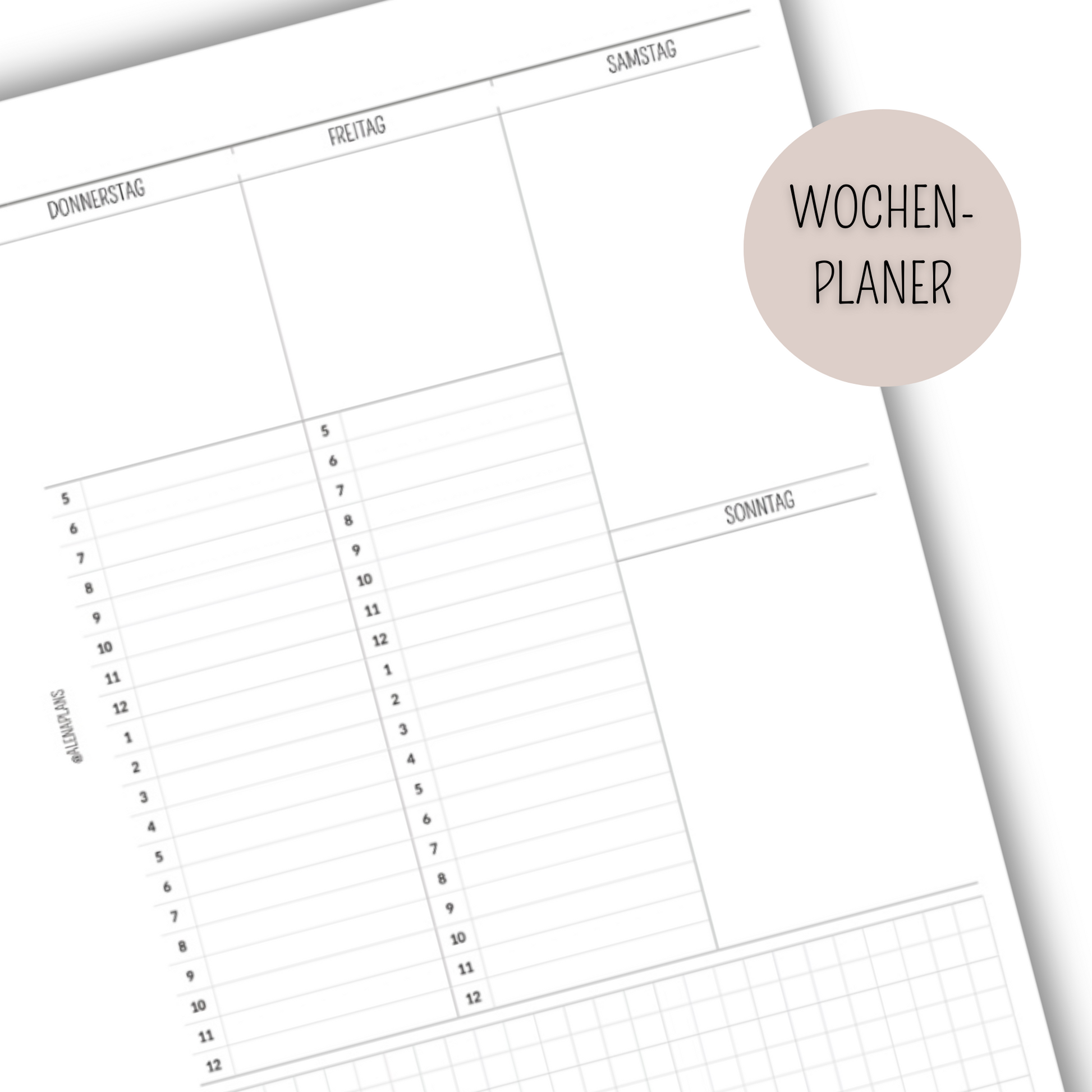 Zieiteinteilung Wochenplaner - Kalendereinlagen 1 Woche 2 Seiten - WOP 018